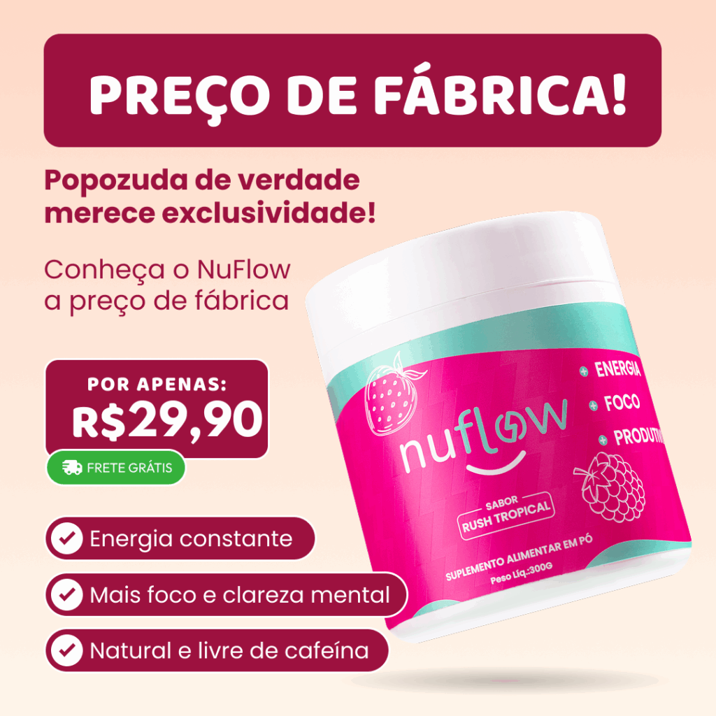 Recupere sua energia e disposição em segundos com a Nuflow, o primeiro passo para uma rotina mais focada e produtiva, sem os malefícios da cafeína!